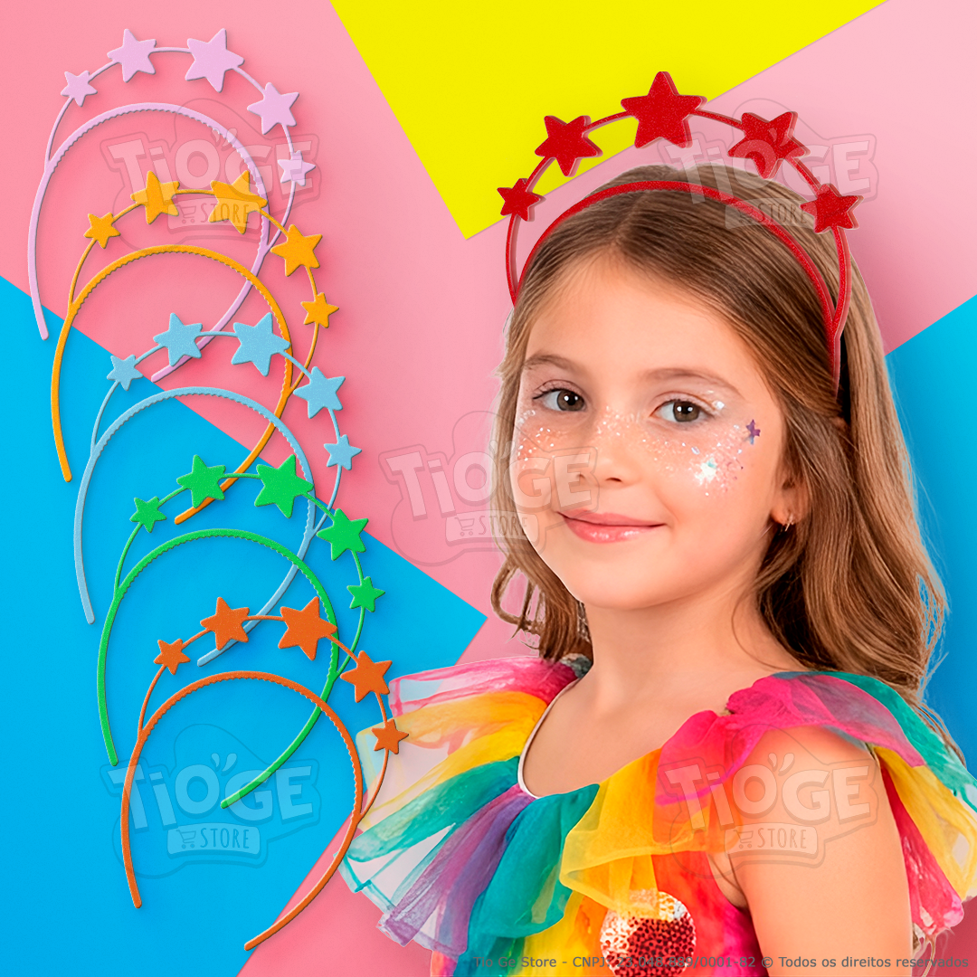 - 1 Arco Tiara Infantil de Carnaval Estrelas Resistente Confortável Festa Fantasia na Cor Selecionada.
