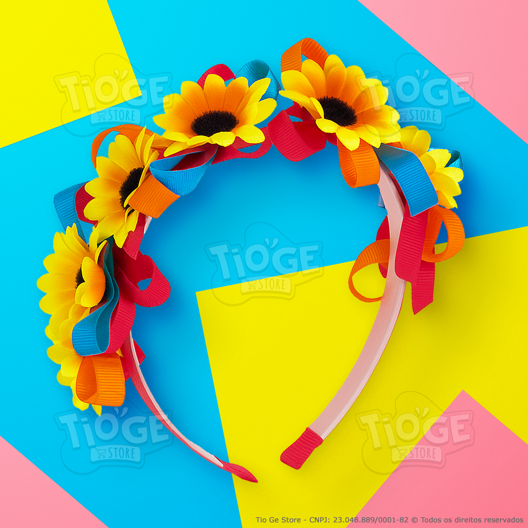 Encante as pequenas com este lindo arco tiara infantil de girassóis com fitas coloridas! Perfeito para Festa Junina, apresentações escolares, ensaios, ensaios fotográficos ou simplesmente para deixar o visual ainda mais alegre e encantador. Feito com materiais de qualidade, o arco é leve, confortável e se ajusta bem à cabeça das crianças. As fitas coloridas e flores de girassol trazem um toque vibrante e divertido, combinando com qualquer look junino ou temático. Cada unidade é produzida com capricho artesanal, podendo haver variação nas cores das fitas, tornando cada peça única.