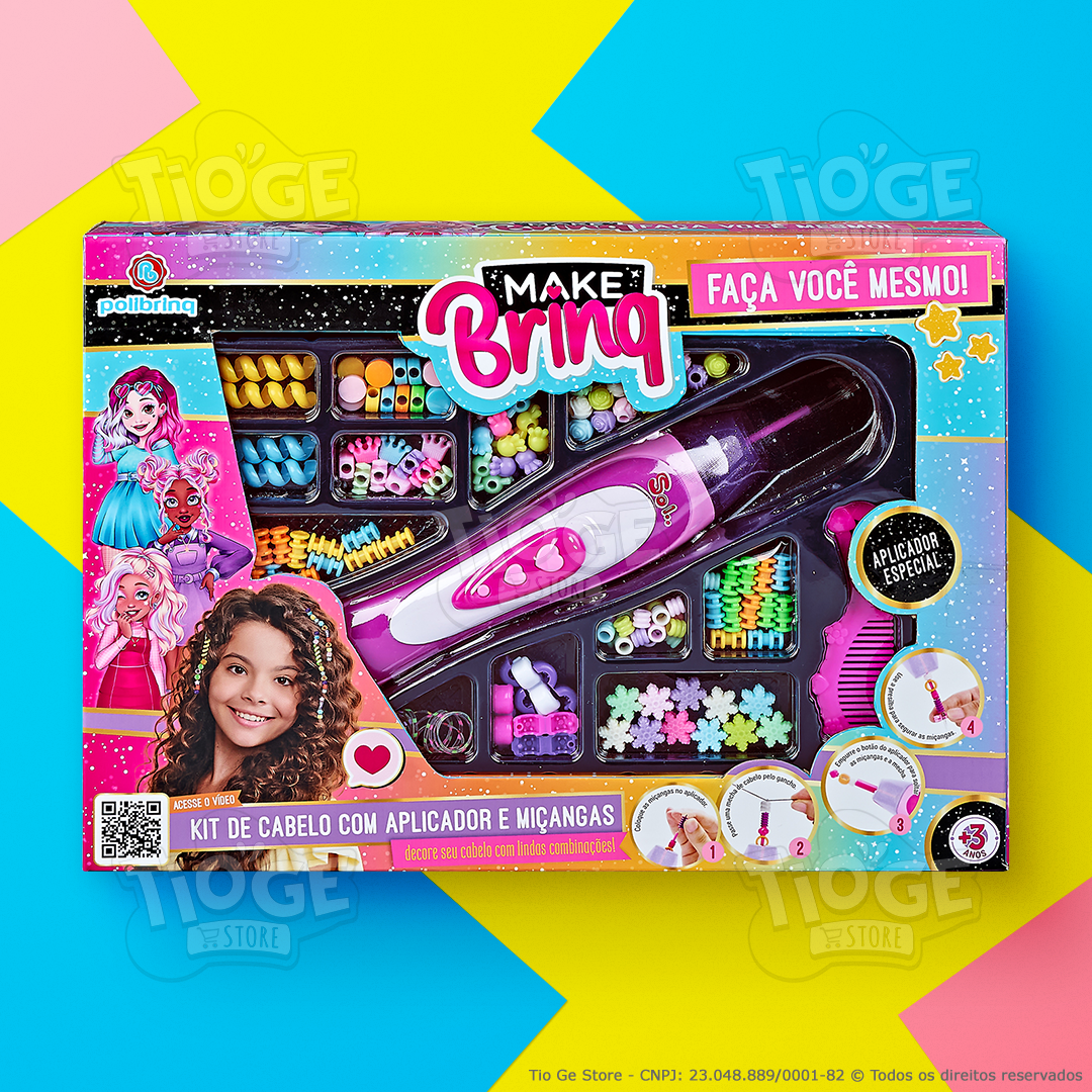 - 1 Máquina Aplicador de Miçangas de Cabelo Infantil Faça Você Mesmo Penteados Tererê Divertidos Personalizados Makebrinq.
